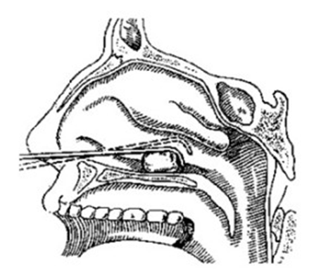 Инородные тела из ротовой части глотки – из миндалин, из небных дужек, – удаляют обыкновенным носовым или ушным пинцетом с плотно соприкасающими между собой браншами. После надлежащей анестезии инородное тело из корня языка и иногда грушевидных ямок удаляют гортанными щипцами под контролем гортанного зеркала. С профилактической целью, чтобы предупредить развитие воспалительного процесса в травмированной инородным телом ткани, больному назначают антибиотики. Существует несколько способов извлечения инородного тела из носоглотки. Его можно осторожно вывихнуть из ложа изогнутым зондом, носоглоточным ватодержателем или пальцем. Второй способ извлечения инородного тела из носоглотки состоит в проталкивании его со стороны нижнего носового хода. В отдельных случаях приходится приподнять мягкое небо и щипцами извлечь предмет из носоглотки через рот.